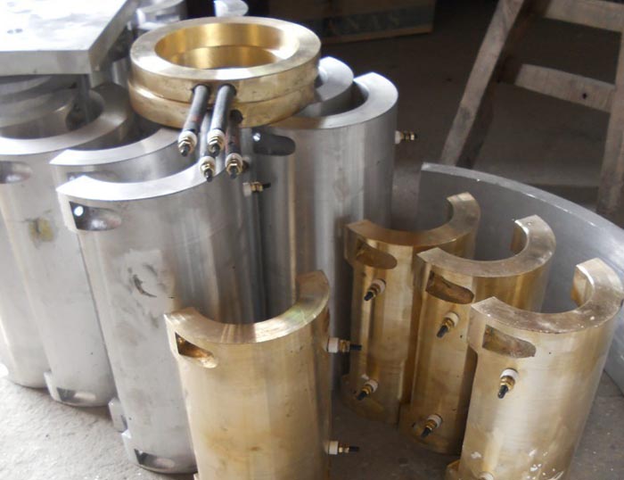 铸铜电加热圈是用一般金属管状电热元件弯成1~5 圈圆环形状后, 再用硅铝合金或硅铜合金铸成完整的一块电热板。与管状元件式电热板相比, 它与锅底的有效传热面更大。这种结构机械强度大、 寿命长、热效率高电热板又称电灶板、 烹调电板、 密封电炉板、除湿板等。 它是一种通电后板面发热而不带电且无明火的、 外形呈圆形或方形的、 安全可靠的电加热平板。